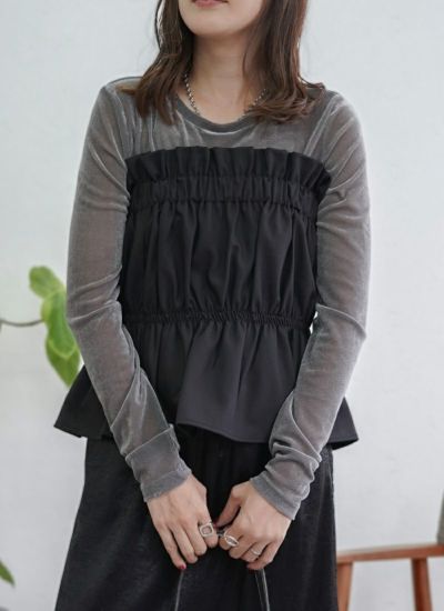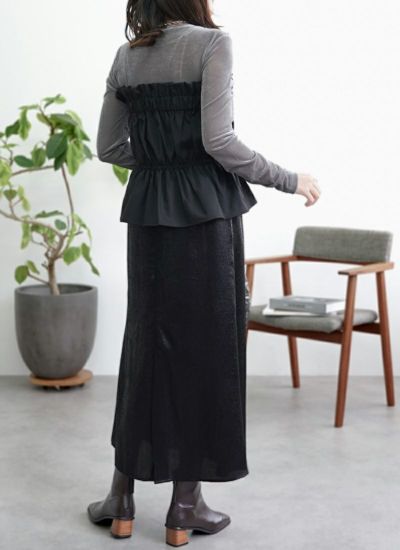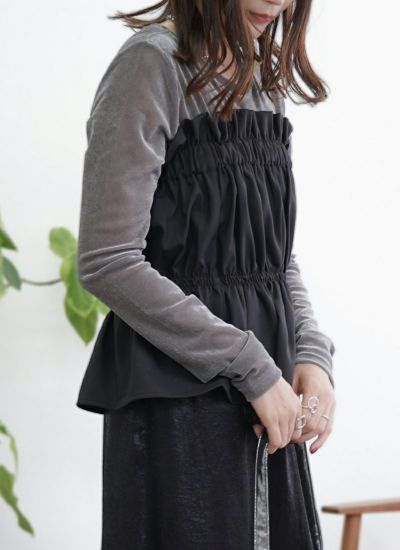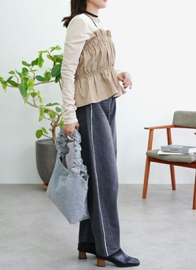 着こなしが広がる、リネンタッチのギャザーベアトップ。
