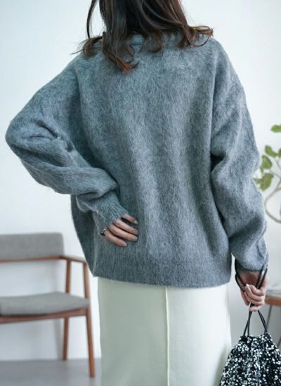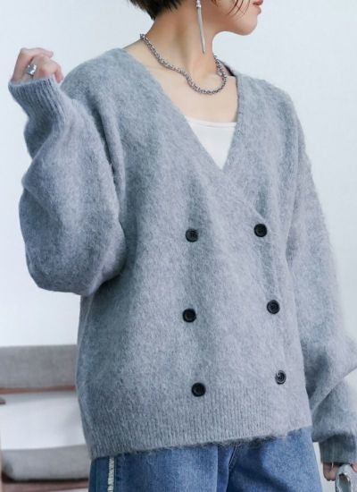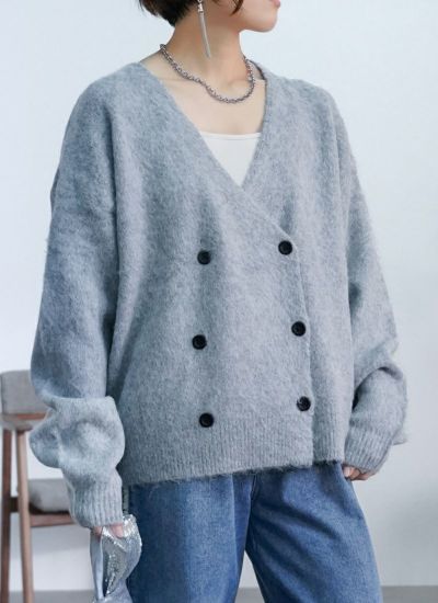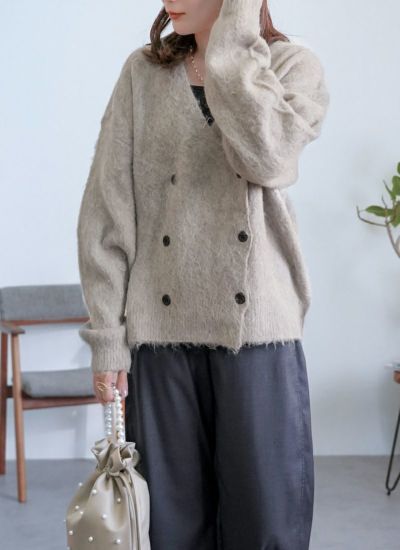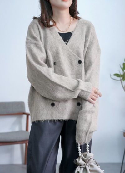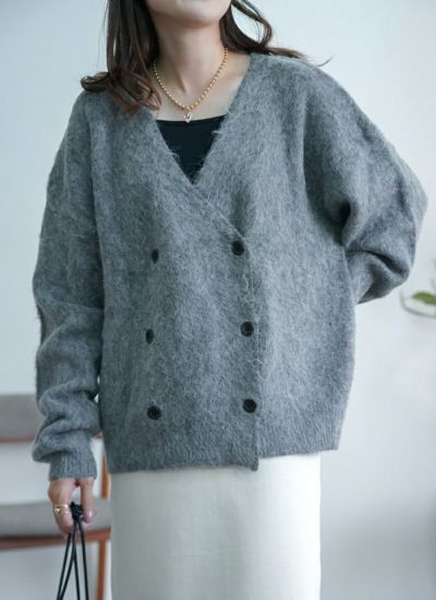 revoam【ダブルボタンでクラシカル。羽織るだけで上品スタイル】 ダブルブレストシャギー ニット カーデ