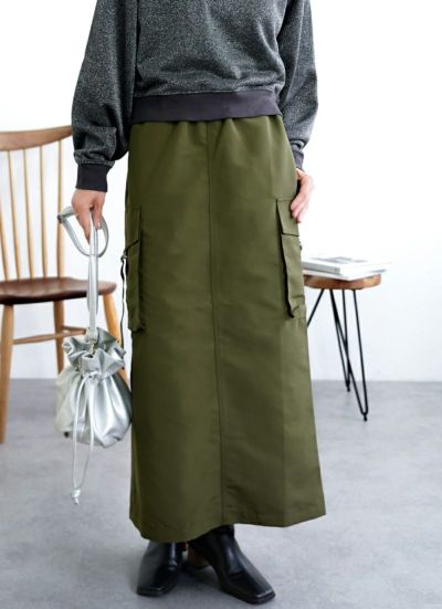 revoam【きちんと感とラフさのバランスが絶妙な、大人の秋スカート】 カーゴナロースカート