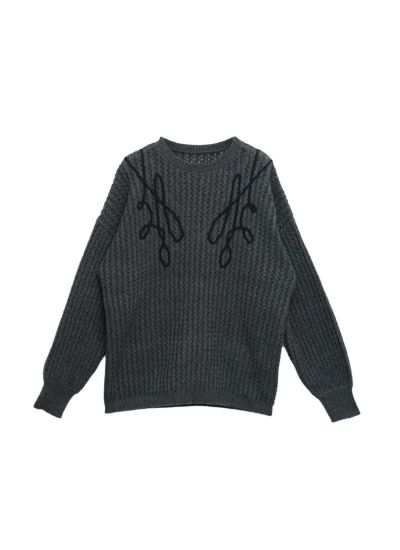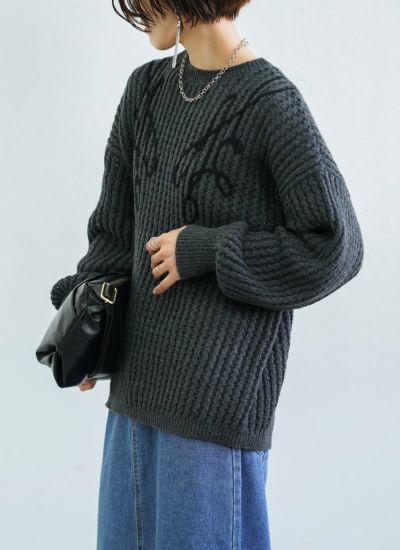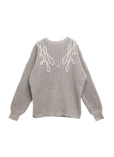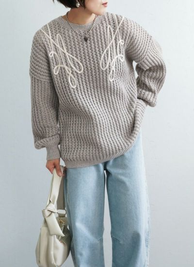 revoam【カジュアルに着ても女性らしい。秋冬に活躍する透かし編みニット】 透かし編みテープ刺繍プルオーバー