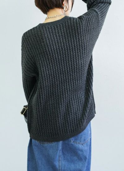 透かしニットなのでレイヤードスタイルや、暖かくなってきたらブラトップ合わせでヘルシーな着こなしがぴったり。