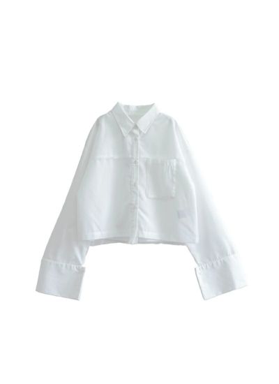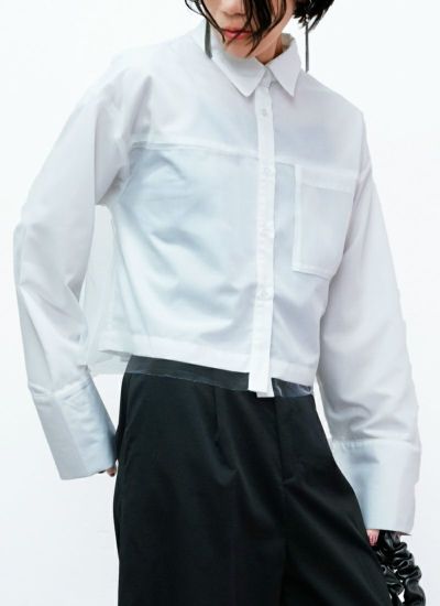 ベーシックなクロップドシャツにチュールを重ねた、トレンド感たっぷりな1着。