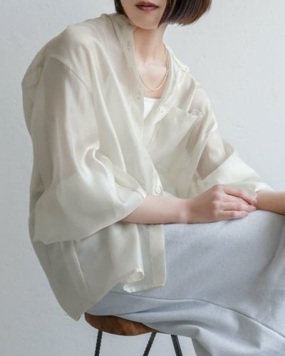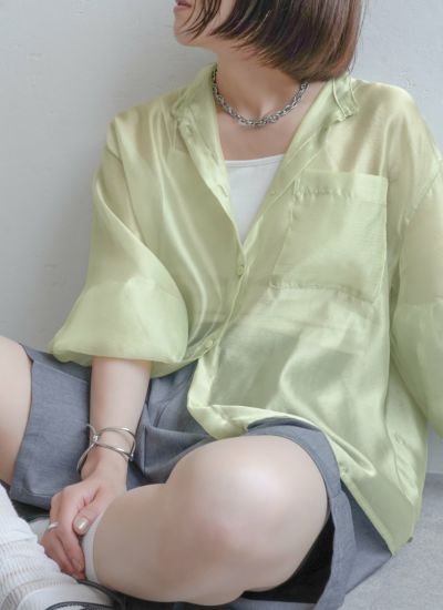 シアーシャイニーボリュームスリーブシャツ
