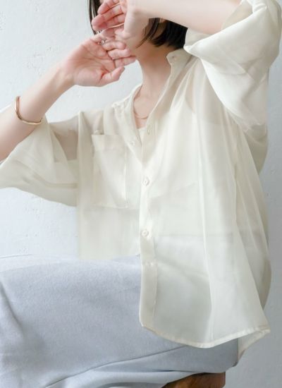 5. 【10%OFF】シアーシャイニーボリュームスリーブシャツ