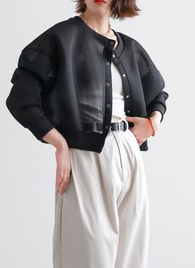 シアー感とブルゾンライクなカジュアルシルエットが絶妙バランスで、 甘すぎない大人の肌見せを叶えてくれます。