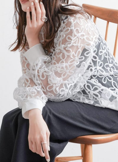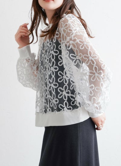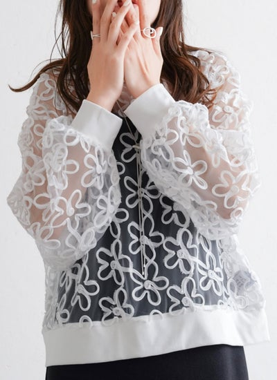 revoam【花柄に施された刺繍がトレンドライクな1枚】 チュールコード刺繍プルオーバー