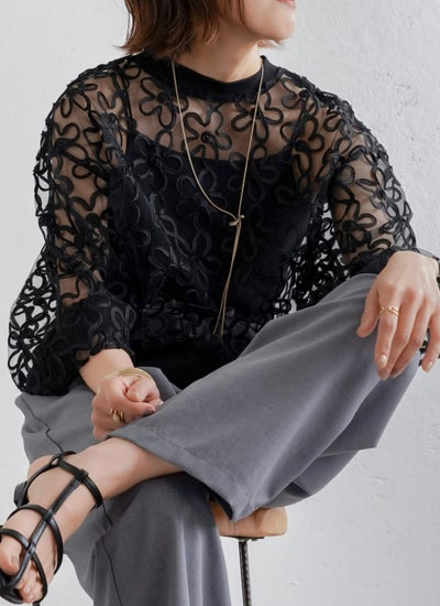 5. チュールコード刺繍プルオーバー