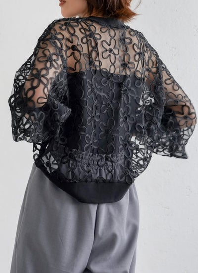 トレンドの3Dフラワー刺繍のお洒落なレーストップス。