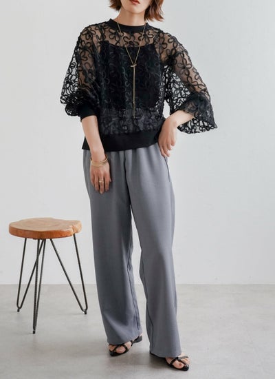 4. チュールコード刺繍プルオーバー