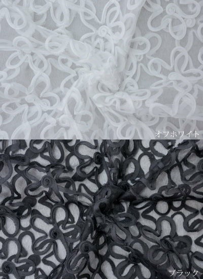 トレンドライクな波打つようなチュールテープ刺繍は、優美で華やかな表情を演出。