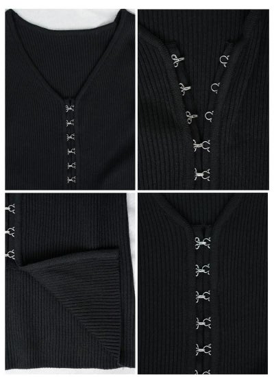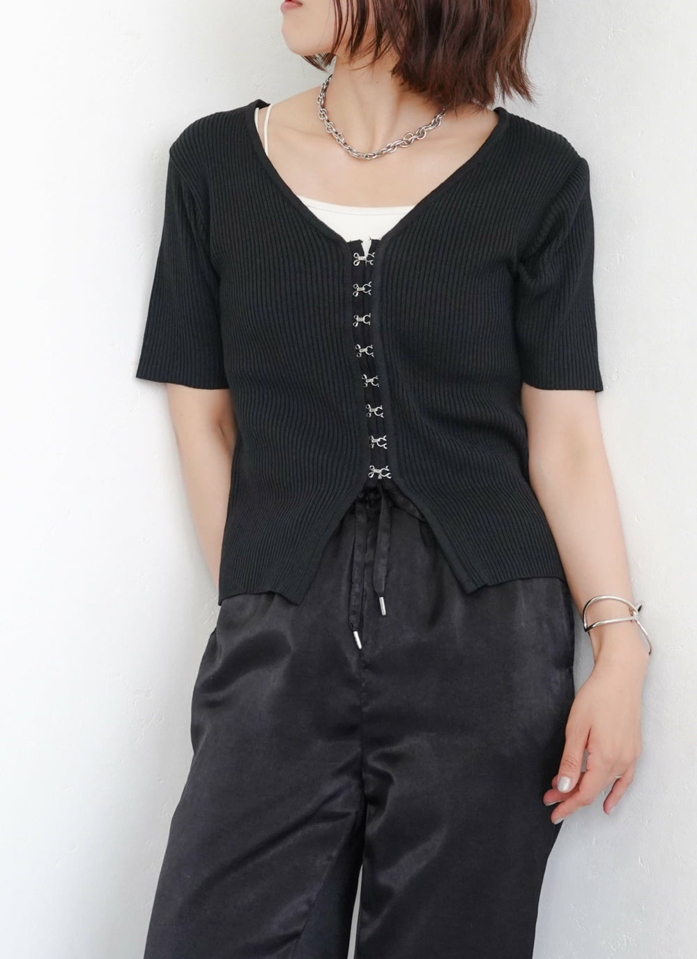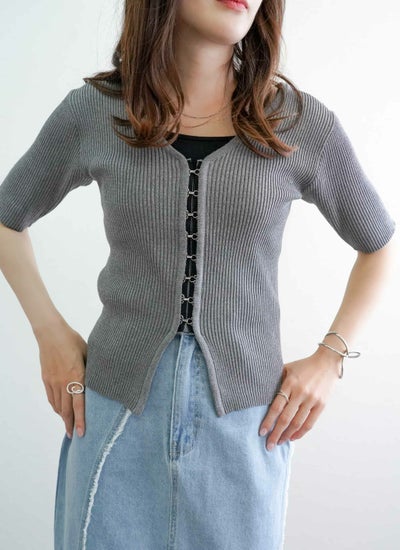 revoam【モードなホックデザインが魅力のもちもちニット!】 もちもちニットホックカーデ
