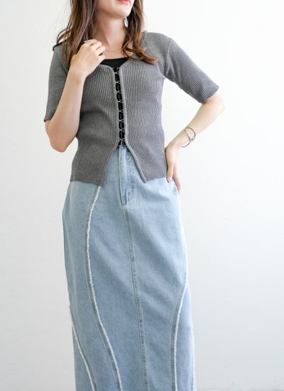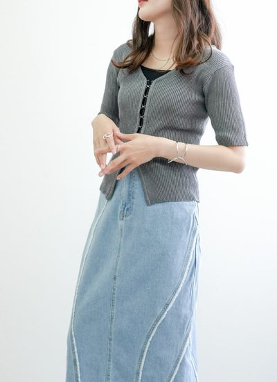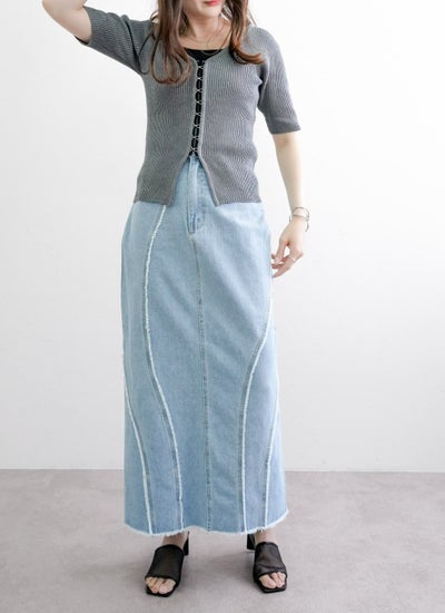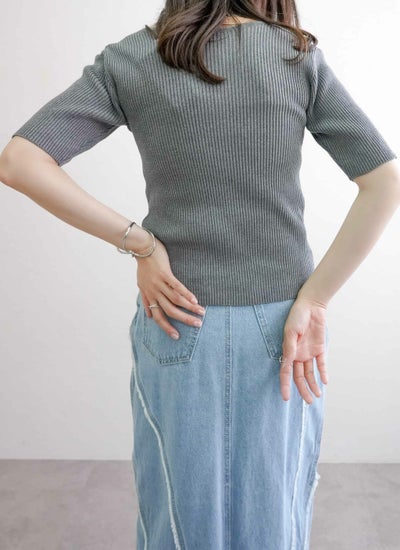 ハイウエストのデニムやスラックスと合わせて、コンパクトなトップス風に着こなすとバランスよくまとまります。