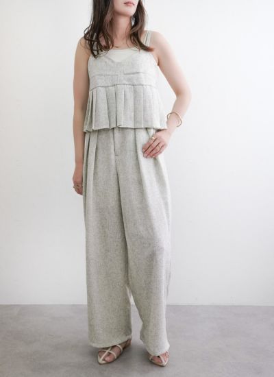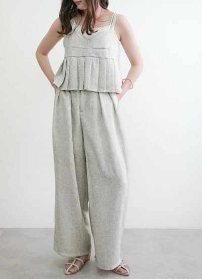 同素材の251221 サマーツイードタックパンツとセットアップ風の着方がトレンドライクでおすすめです。