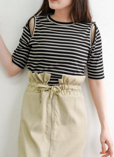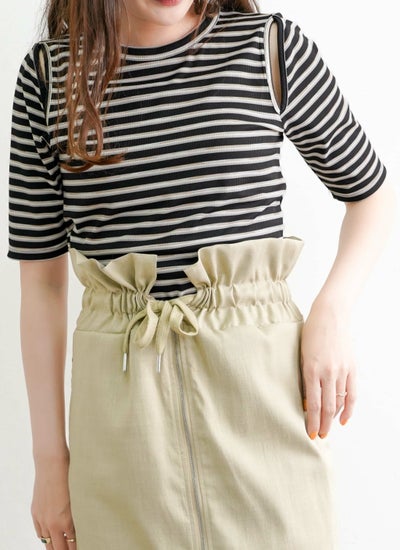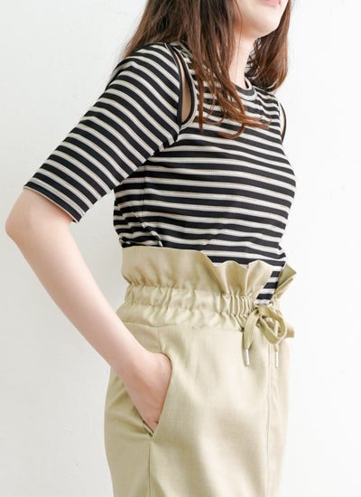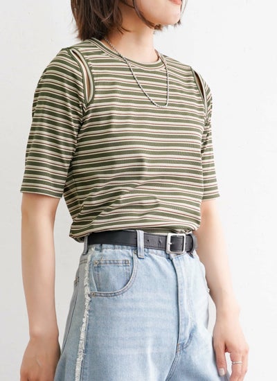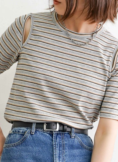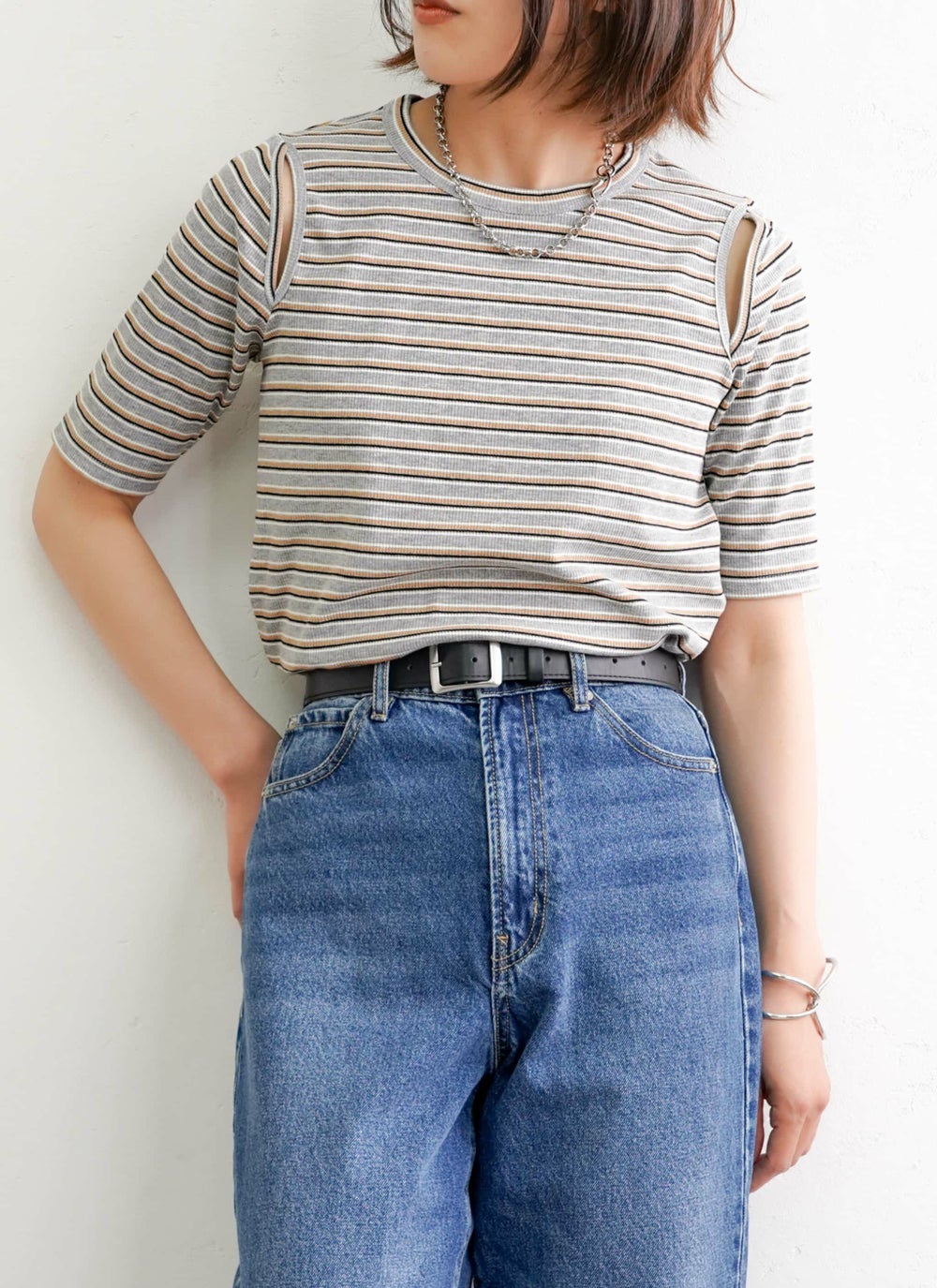 revoam【一枚でコーディネートの主役に◎】 ボーダーリブカットアウトプルオーバー