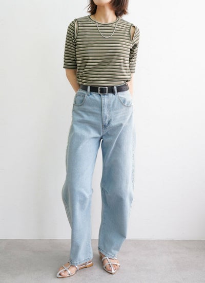 シンプルでベーシックなアイテムなので、デニムやスカート、ボトムスを選ばずに着まわしていただけます。