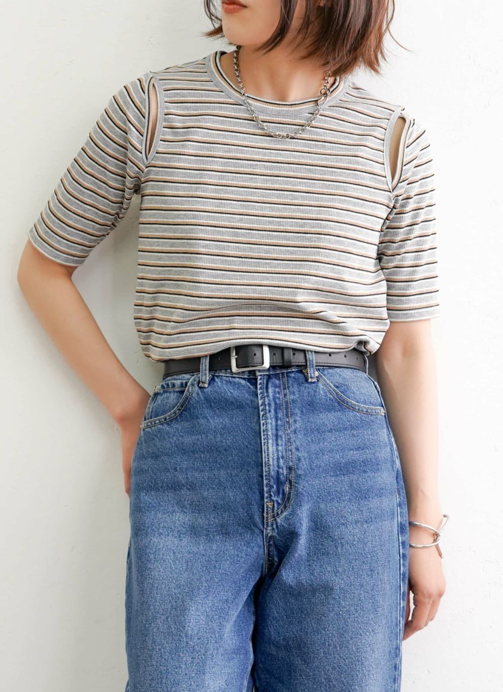 5. ボーダーリブカットアウトプルオーバー