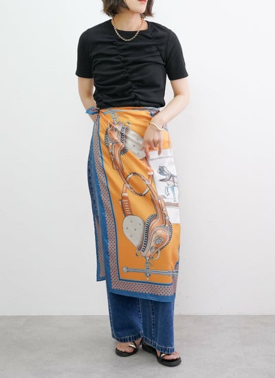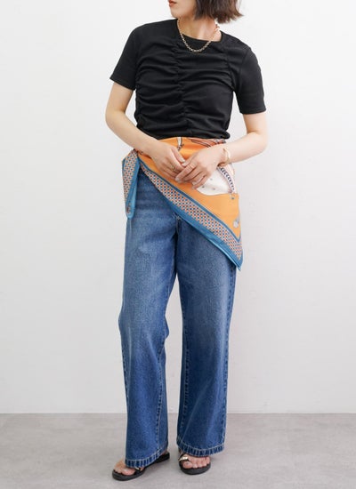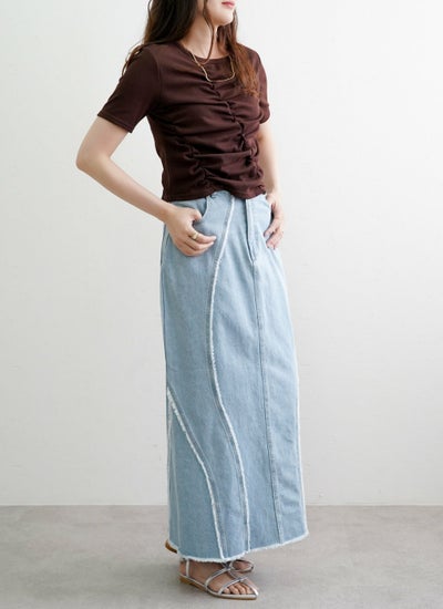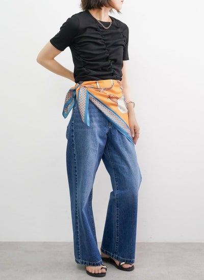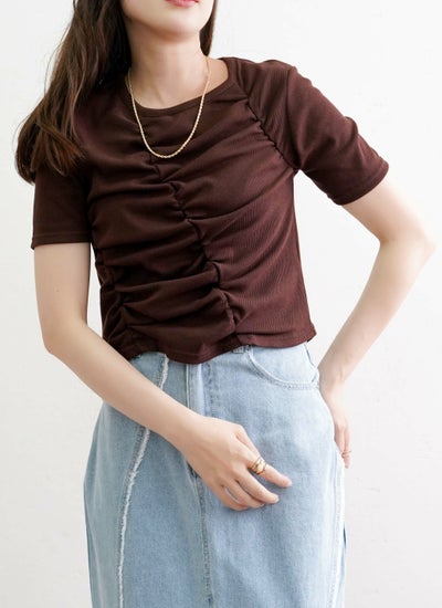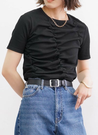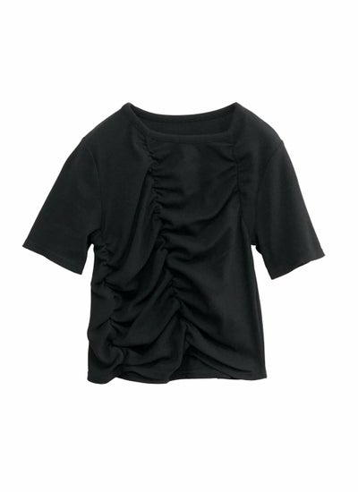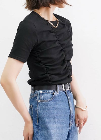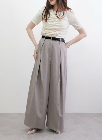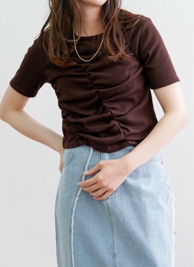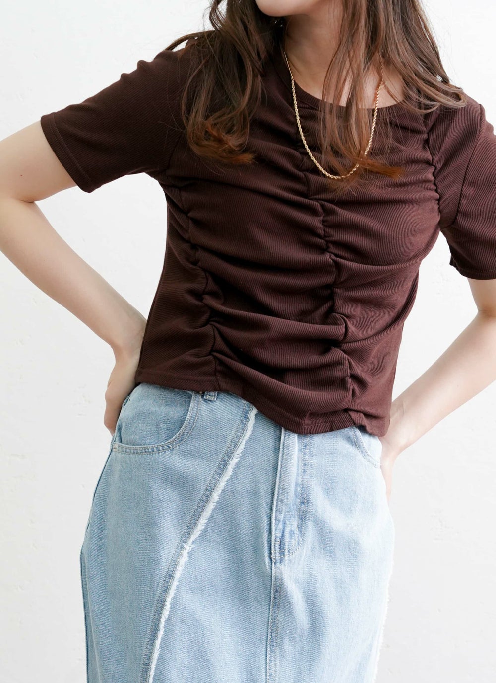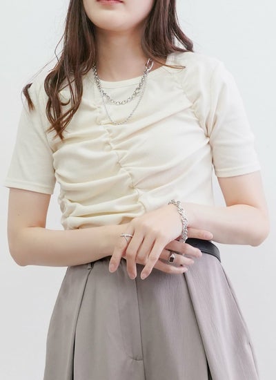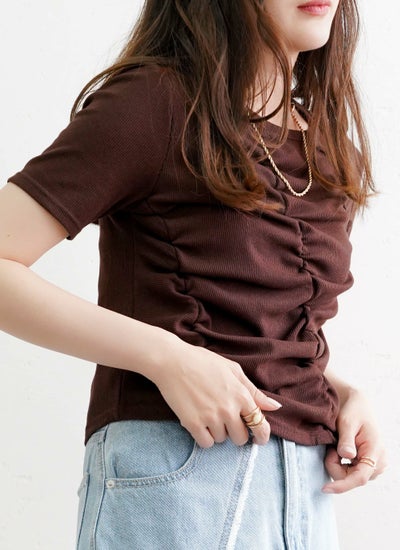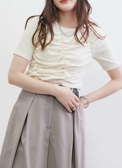 フロントに施されたトレンド感のあるシャーリングトップス。