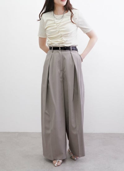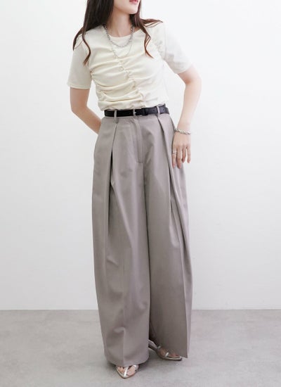 シャーリングによって生地に自然なドレープが生まれ、立体感のある女性らしいスタイルに。