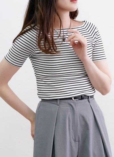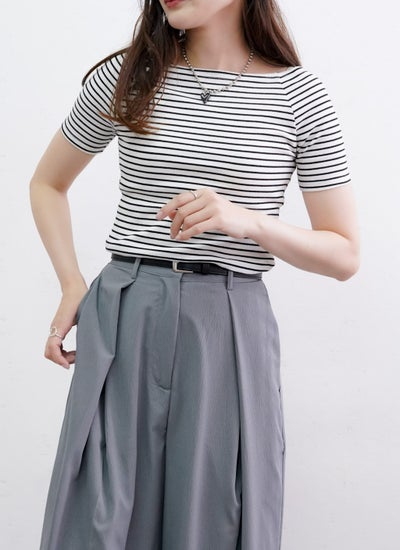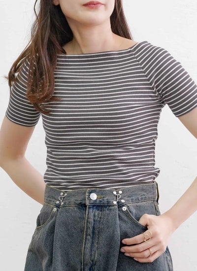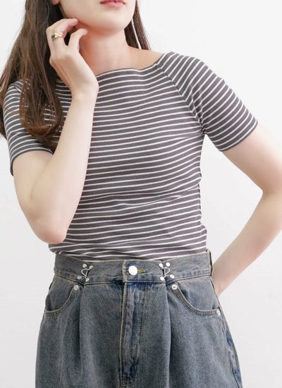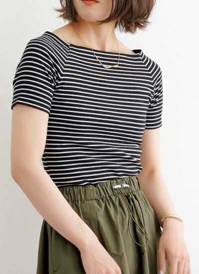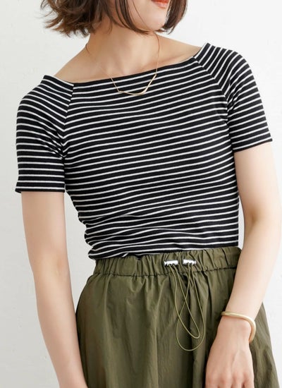 revoam【華奢な雰囲気を演出するボーダートップス】 ボーダーリブオフショルトップス