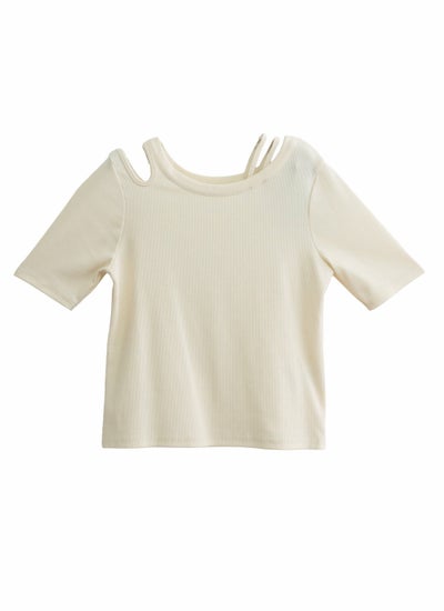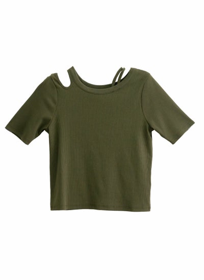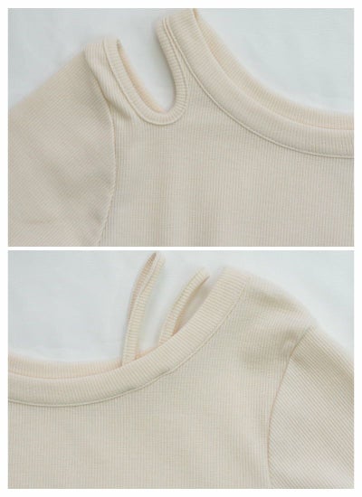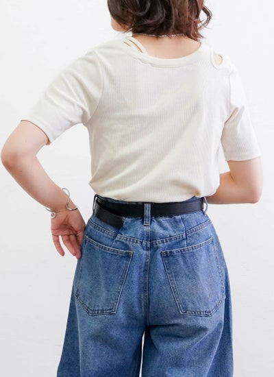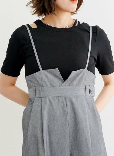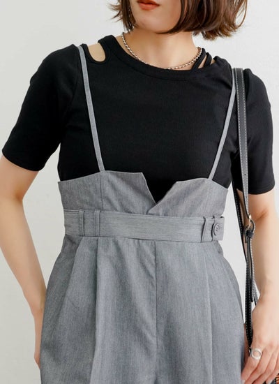 大胆すぎないワンショルダー風カットが目を引く、アシンメトリーのカットアウトデザイン。