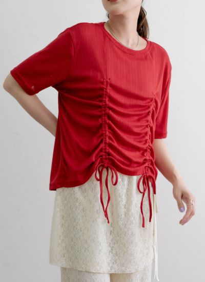 revoam【ギャザーデザインがトレンド感ありお洒落見えするポイント 】 ドロストシアーカットソー