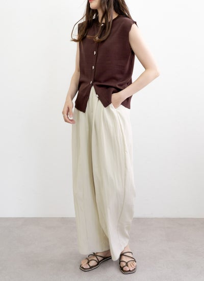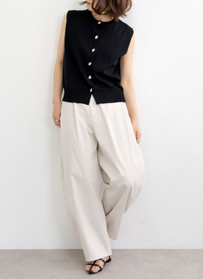 ワイドパンツやタックパンツと合わせたキレイめコーデな雰囲気がおすすめ。