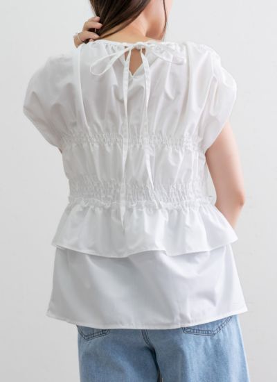 シャーリングバックリボンブラウス