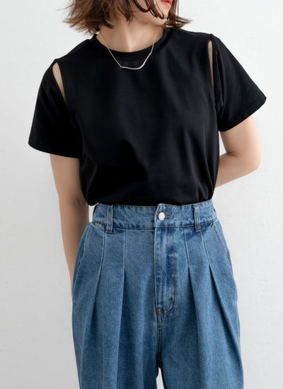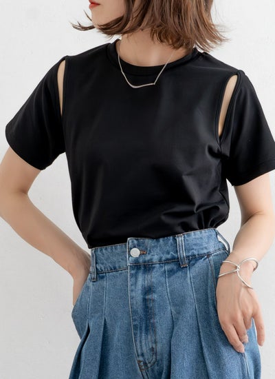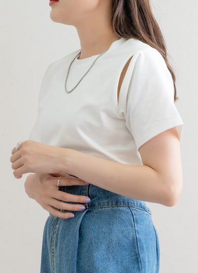 revoam【コンパクトな丈感で程よい肌見せが叶うショート丈Tシャツ】 ショルダーカットアウトTee