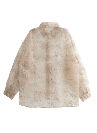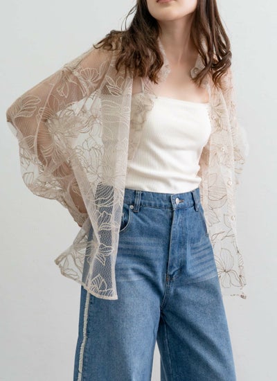 revoam【繊細な花柄刺繍が魅力のオーバーサイズシャツ 】 チュール花柄刺繍シャツ
