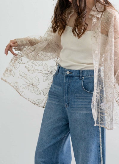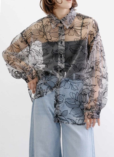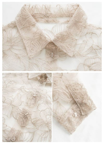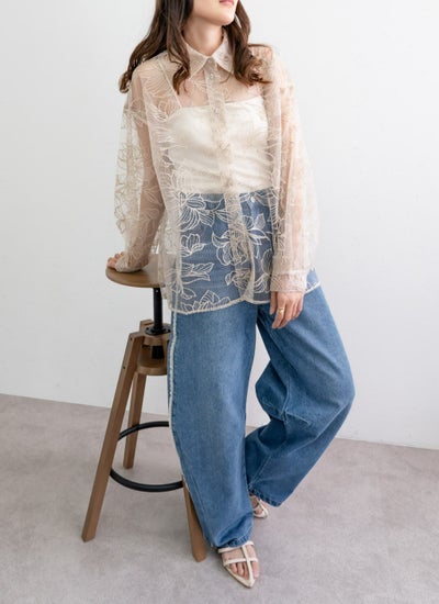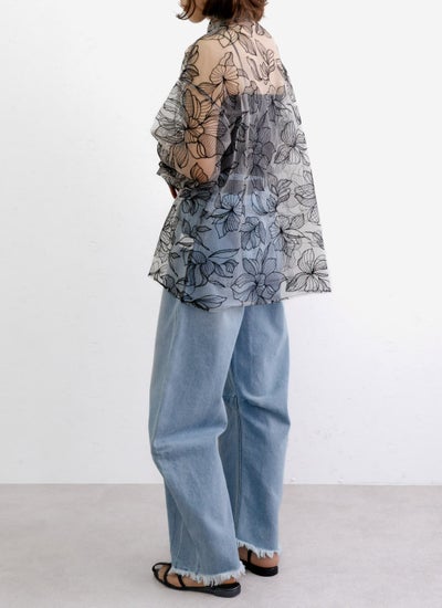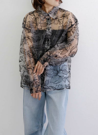 チュール花柄刺繍シャツ
