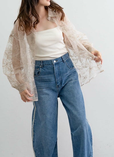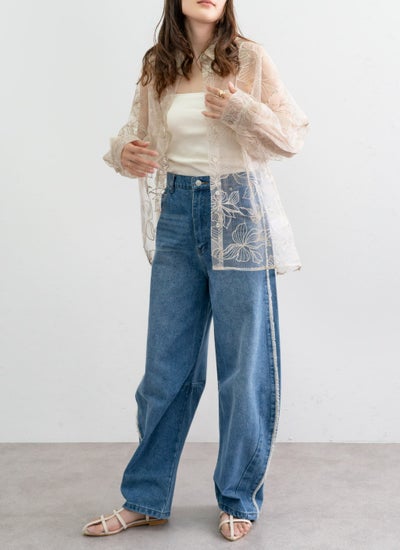 4. チュール花柄刺繍シャツ