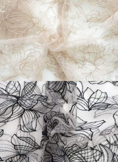 チュール素材に、繊細な花柄刺繍が華やかさをプラスしてくれる1着◎