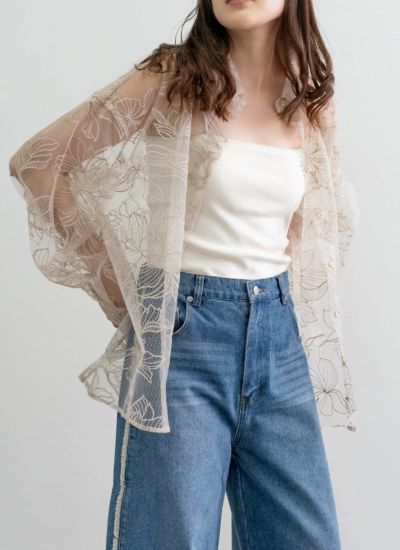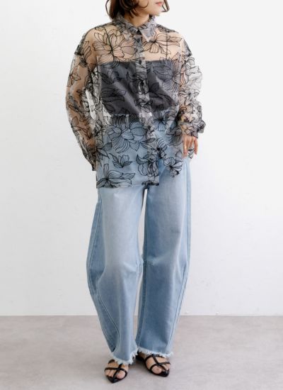 3. チュール花柄刺繍シャツ