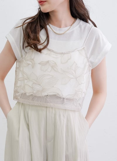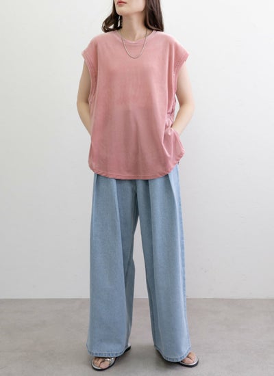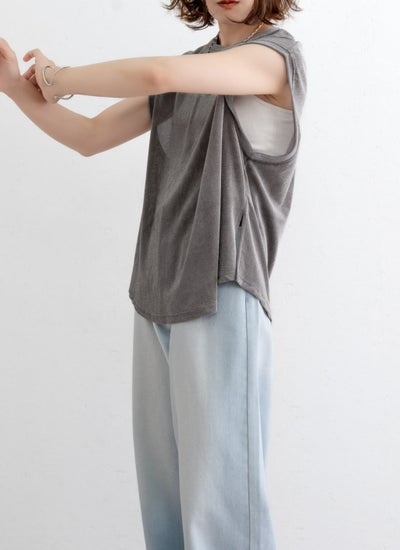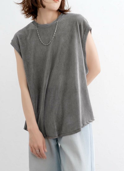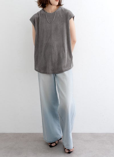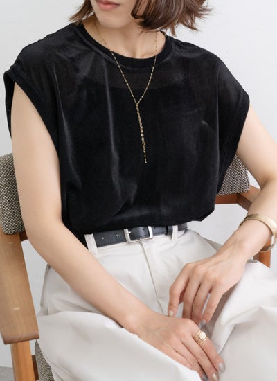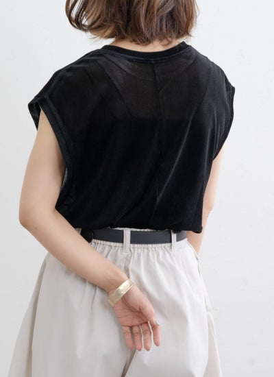 revoam【ベロアライクな質感とシアーな透け感が特徴的なタンクトップ◎ 】 シアーベロアフレンチスリーブTシャツ