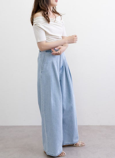 スカートやワイドパンツと合わせれば女性らしいコーディネートに。