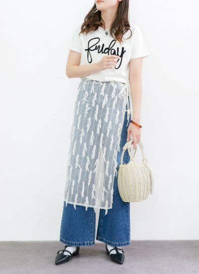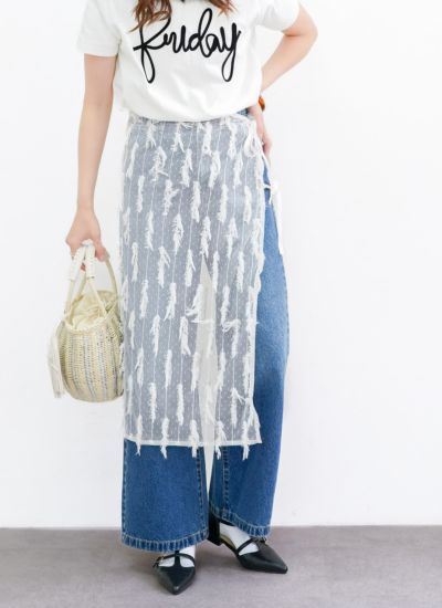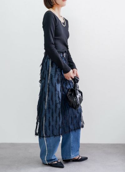 表情のあるフリンジが目を惹くチュールラップスカート。