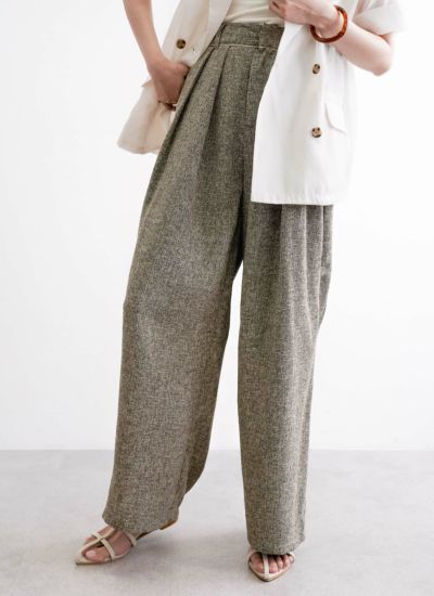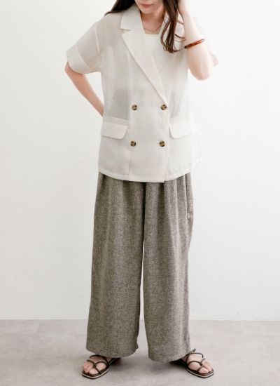 revoam【涼やかで上品な、サマーツイードワイドパンツ】 【10%OFF】サマーツイードタックパンツ