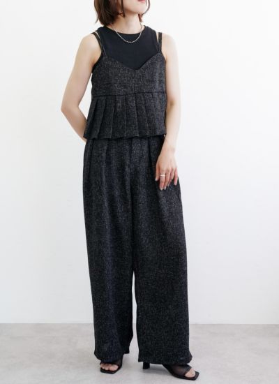 同素材の251140サマーツイードプリーツキャミとセットアップ風の着方がトレンドライクでおすすめです。