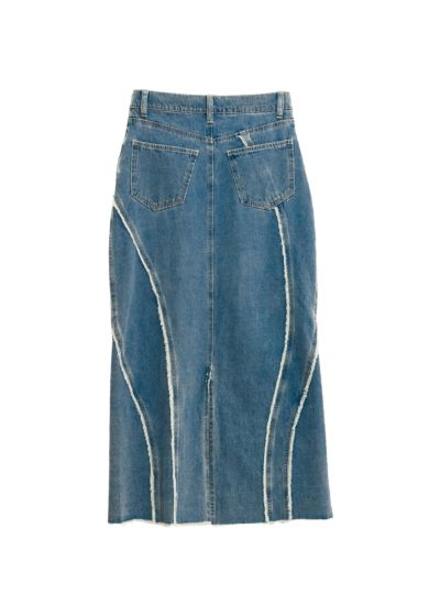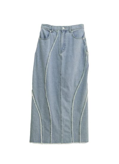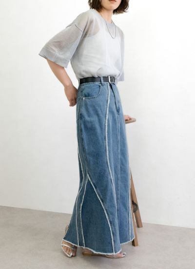 ウェーブカット&フリンジが映える、大人のデニムスカート。