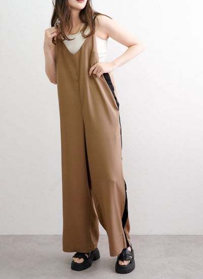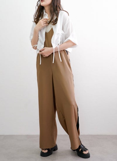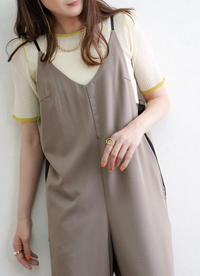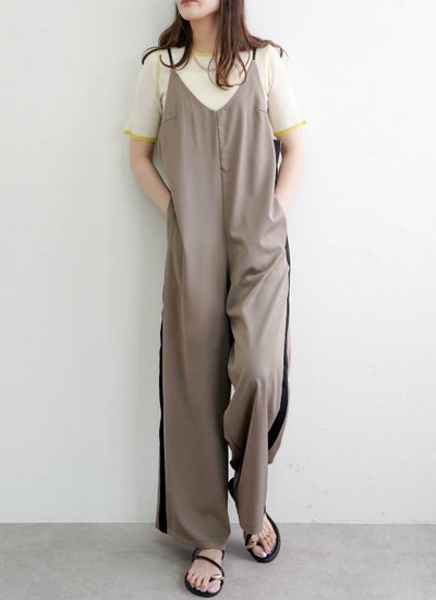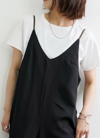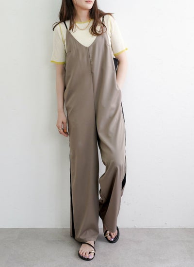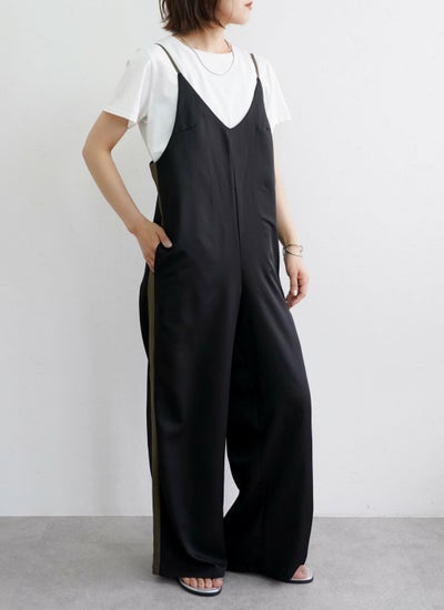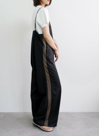 シワになりにくい柔らかくとろみのある生地感のサロペット。