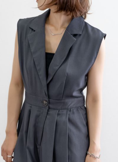 セットアップ見えするテーラードデザインのサロペット。
