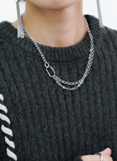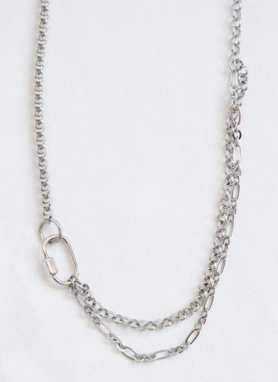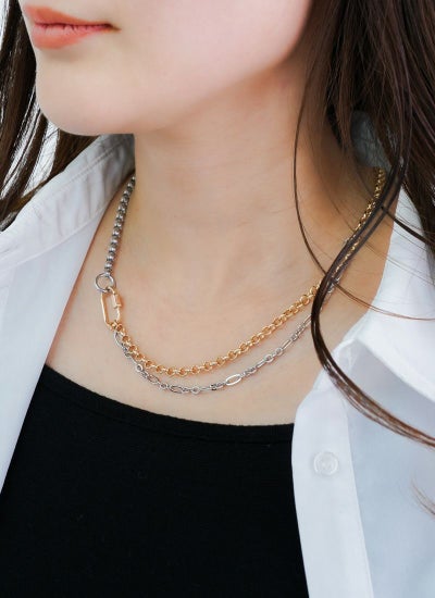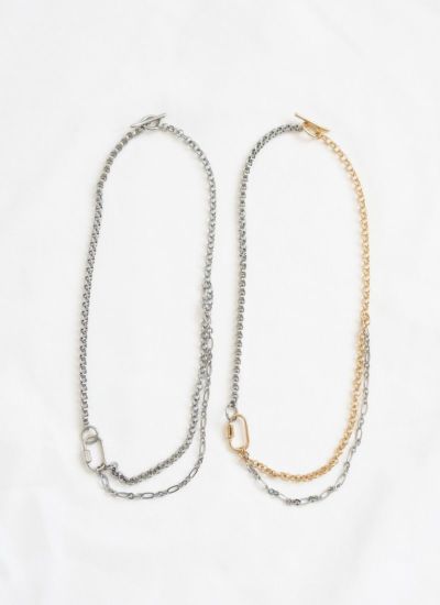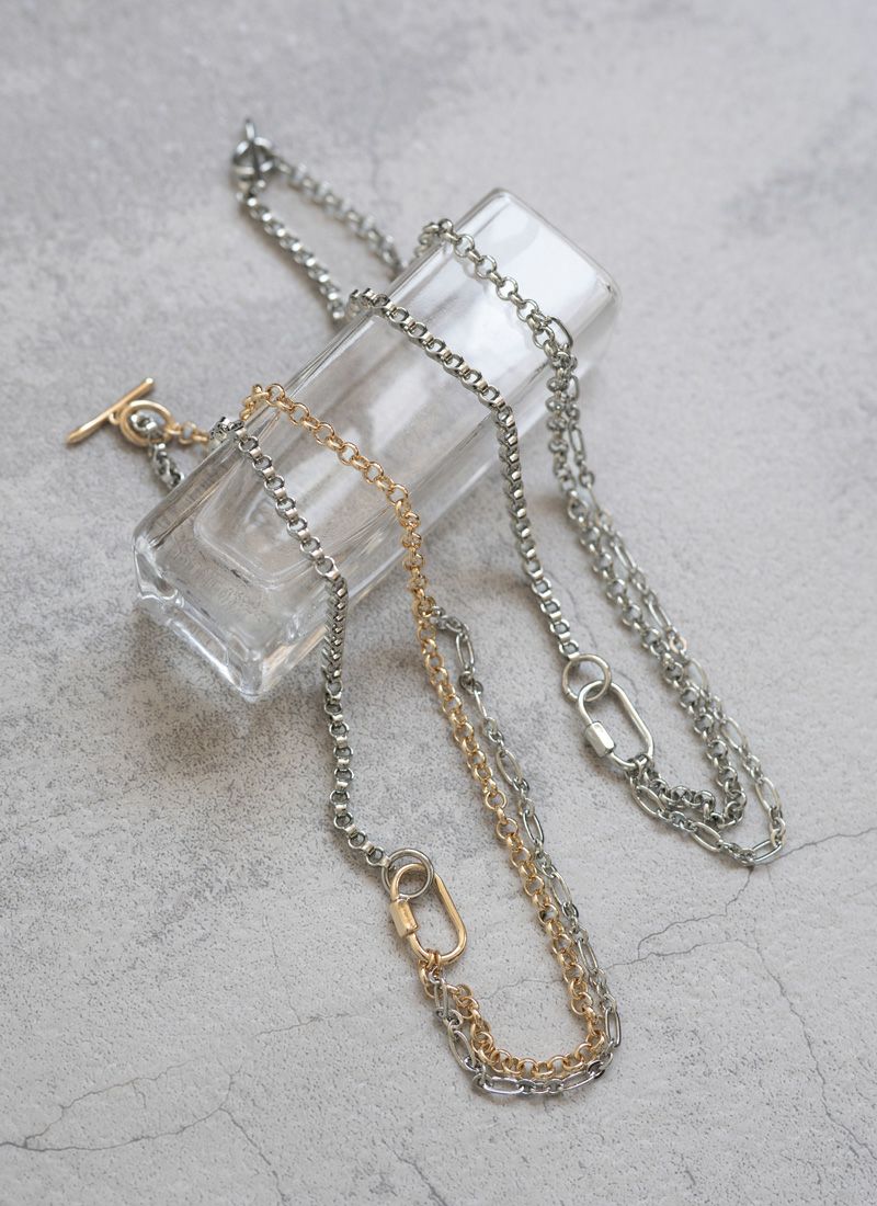 revoam【異なるチェーンを組み合わせた個性派ネックレス】 カラビナチェーンネックレス