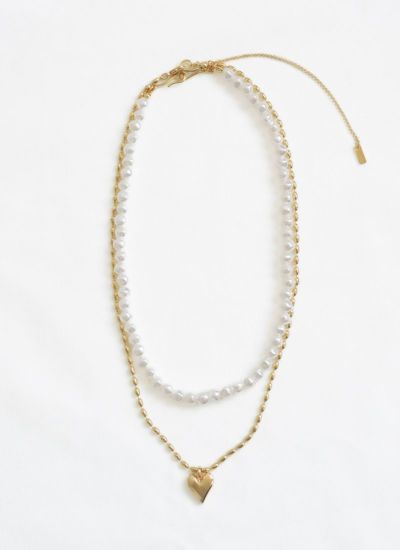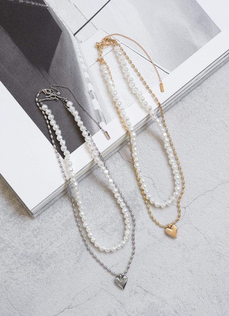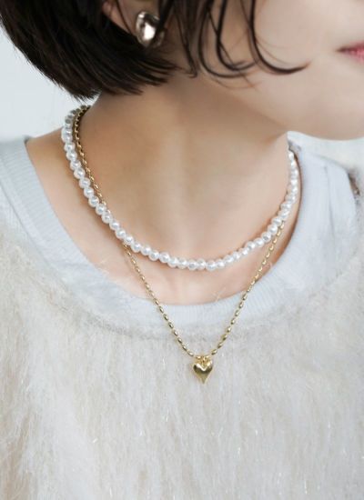 revoam【人気のハートモチーフを使った、2セットネックレス】 パールライン×ハートレイヤードネックレス