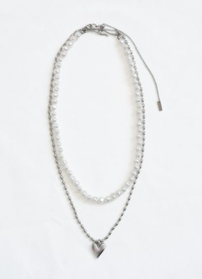 人気のハートモチーフネックレスと、フックモチーフの留め具がアクセントになったパールネックレスの2本セットデザイン。