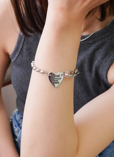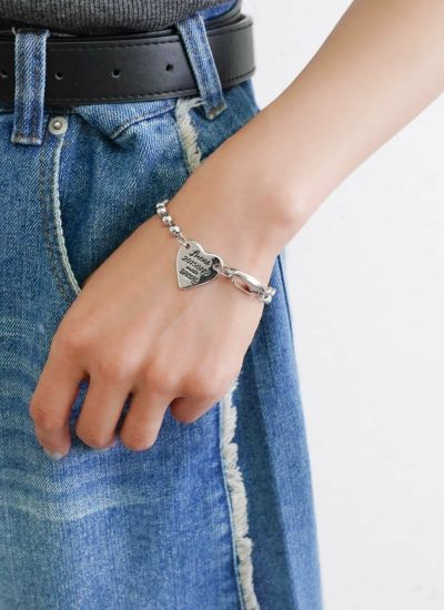 ハートのドッグタグモチーフがキャッチーな、ボリューム感のあるデザインブレスレット。