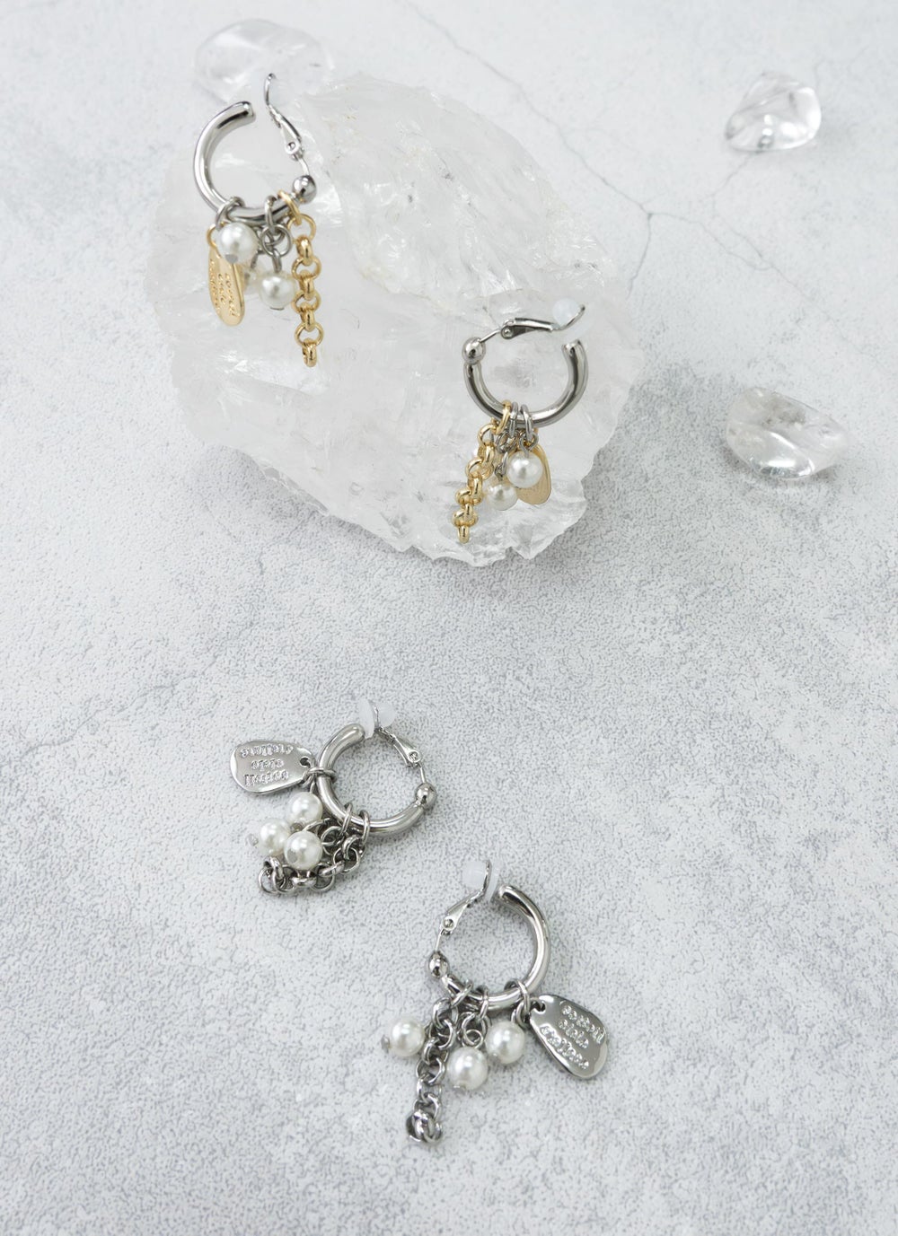 トレンド感のあるマルチチャームが存在感のあるイヤリング。