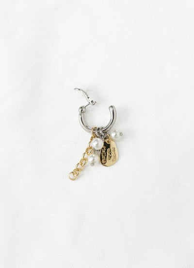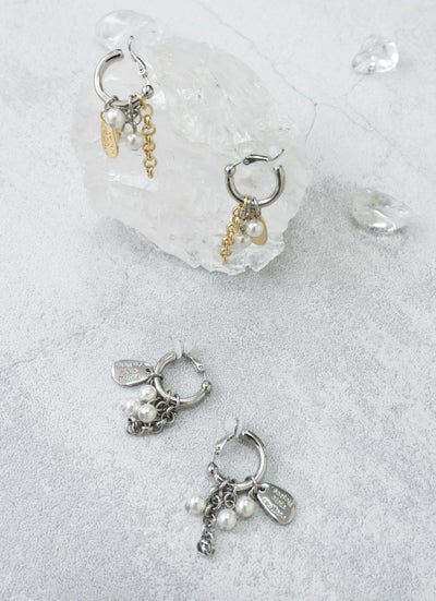 コインモチーフやパール、チェーンをフープに通して組み合わせたデザインのイヤリングは、小さく揺れるチャームが顔周りをこなれた雰囲気に演出します。