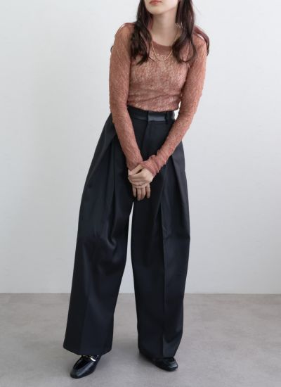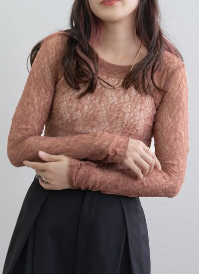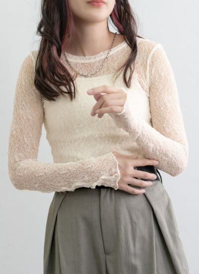 繊細なレース素材を使用したクルーネックプルオーバー。