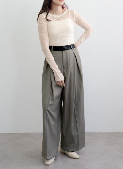 ニットやスウェットなどとレイヤードし、袖からレースを覗かせたりするのもおすすめ◎