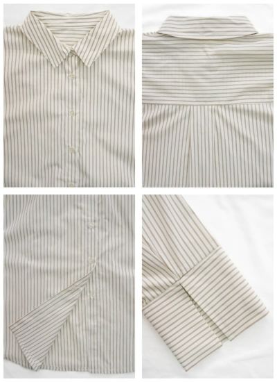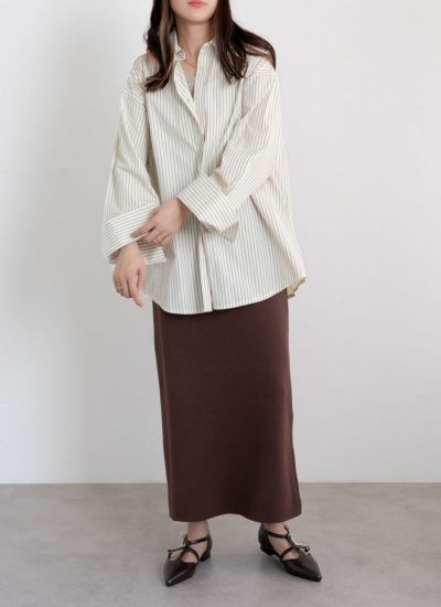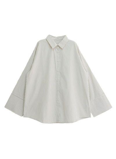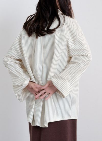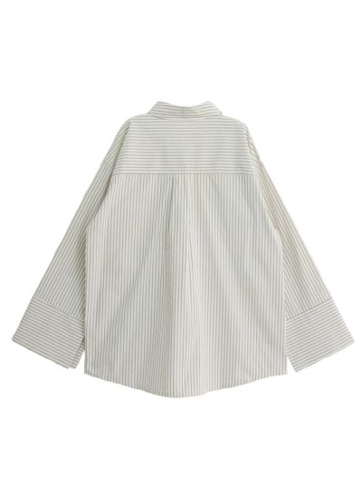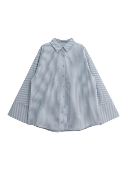 主張控えめの上品なストライプ柄に、袖口はビックカフスでデザインにアクセントを。